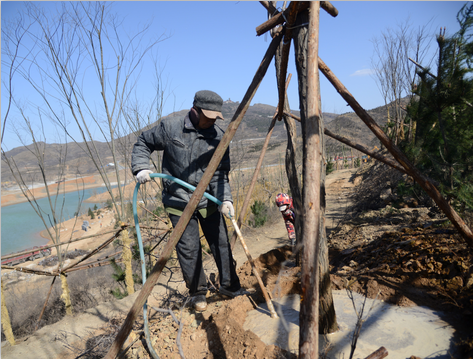 在紫山紫云湖2號(hào)湖區(qū),工人們正在用吊車、鉤機(jī)卸載從全國(guó)各地拉來的樹木,包括香花槐、國(guó)槐、垂絲海棠、櫸樹、青桐等多個(gè)樹種。在紫山梅花谷,60多名工人正在馬不蹄停地栽種剛剛從江蘇拉過來的紅梅,有的培土澆水,有的修剪枝葉,還有的給樹干噴水。“紅梅特別的嬌貴,第一遍必須深根澆水,培土完畢后還要進(jìn)行表層澆水和樹干噴水,這樣才能提高成活率!”紫山植被綠化負(fù)責(zé)人陳小林說,紫山屬于強(qiáng)風(fēng)化巖土質(zhì),植樹前需要鉤機(jī)將巖石拋開,人工換土后再植樹,只要我們科學(xué)栽培,到夏秋季時(shí)一定能看到景區(qū)綠化品味與檔次。