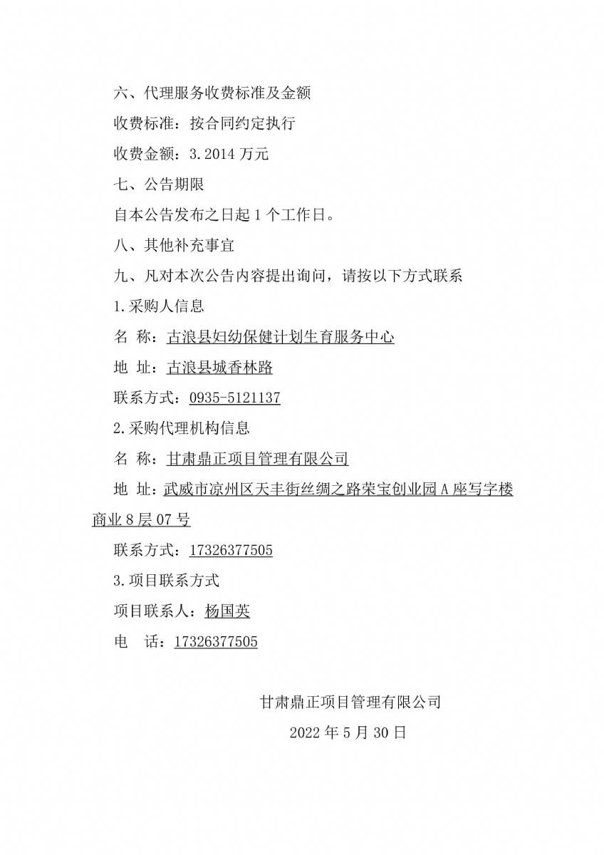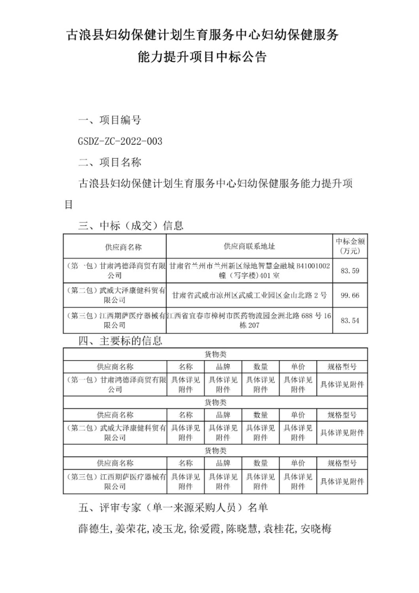 古浪縣婦幼保健計劃生育服務(wù)中心婦幼保健服務(wù)能力提升項目中標公告